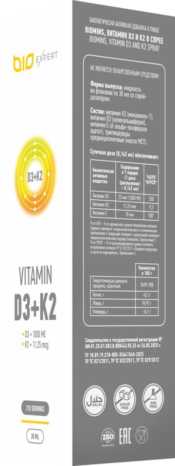 BioExpert, Витамин D3 + K2, жидкость, 20 мл