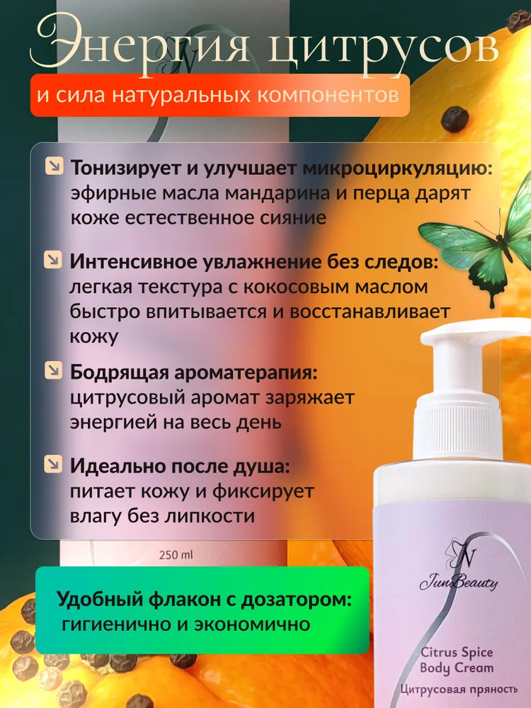 Крем для тела с эфирными маслами мандарина и перца – это роскошь заботы для вашей кожи. Побалуйте себя глубоким увлажнения и нежным ароматом с нашим новым парфюмированным органическим кремом для тела, рук и ног.